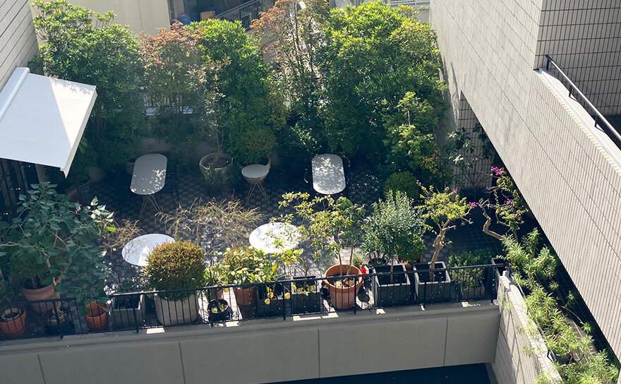 ガーデンテラス 3F共用スペース 風や太陽の光、四季折々の景色を感じられる癒しのスポット 緑に囲まれたガーデンテラスは、どなたでもご利用いただけるスペース。建物の中にありながら風や太陽の光、四季折々の景色を感じられる癒しのスポットです。ランチや打ち合わせ、憩いの場としてご利用ください。 AXISギャラリー b1f カマダ ヴィンテージファニチャー クラシック 日本料理 菱沼 布 リビング・モティーフ 1f ブラッセリー・ヴァトゥ リビング・モティーフ ル・ガラージュ 2f アンビエンテック・ギャラリー トーキョー タカ・イシイギャラリー フォトグラフィー/フィルム ビブリオファイル ヨシキン ラピアーツ リビング・モティーフ 3f クラージュ・ドゥ・ヴィーブル バング & オルフセン 六本木 ローリーロドキン東京店 オドー・コペンハーゲン トムス・ガーデン ガーデンテラス 4f JIDA デザインミュージアム AXISギャラリー