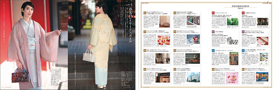 この度、ハースト婦人画報社の雑誌「美しいキモノ」の撮影にご協力させていただき、AXISビル内の各所を掲載いただきました。